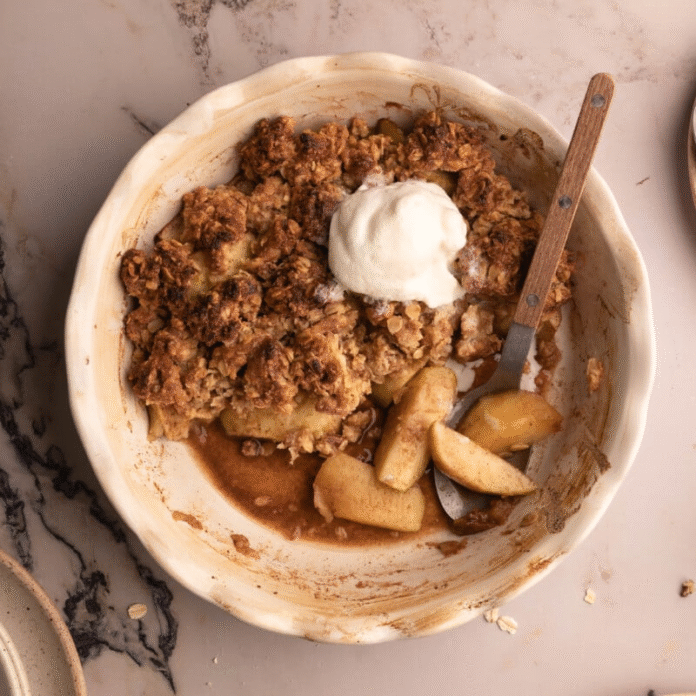 When it comes to nostalgic fall desserts, nothing beats a classic, easy apple crumble. Warm, buttery, and perfectly spiced, it’s the ultimate pairing of tender apples and a golden, crisp topping. Add a scoop of vanilla ice cream on top and—chef’s kiss—pure comfort in every bite.